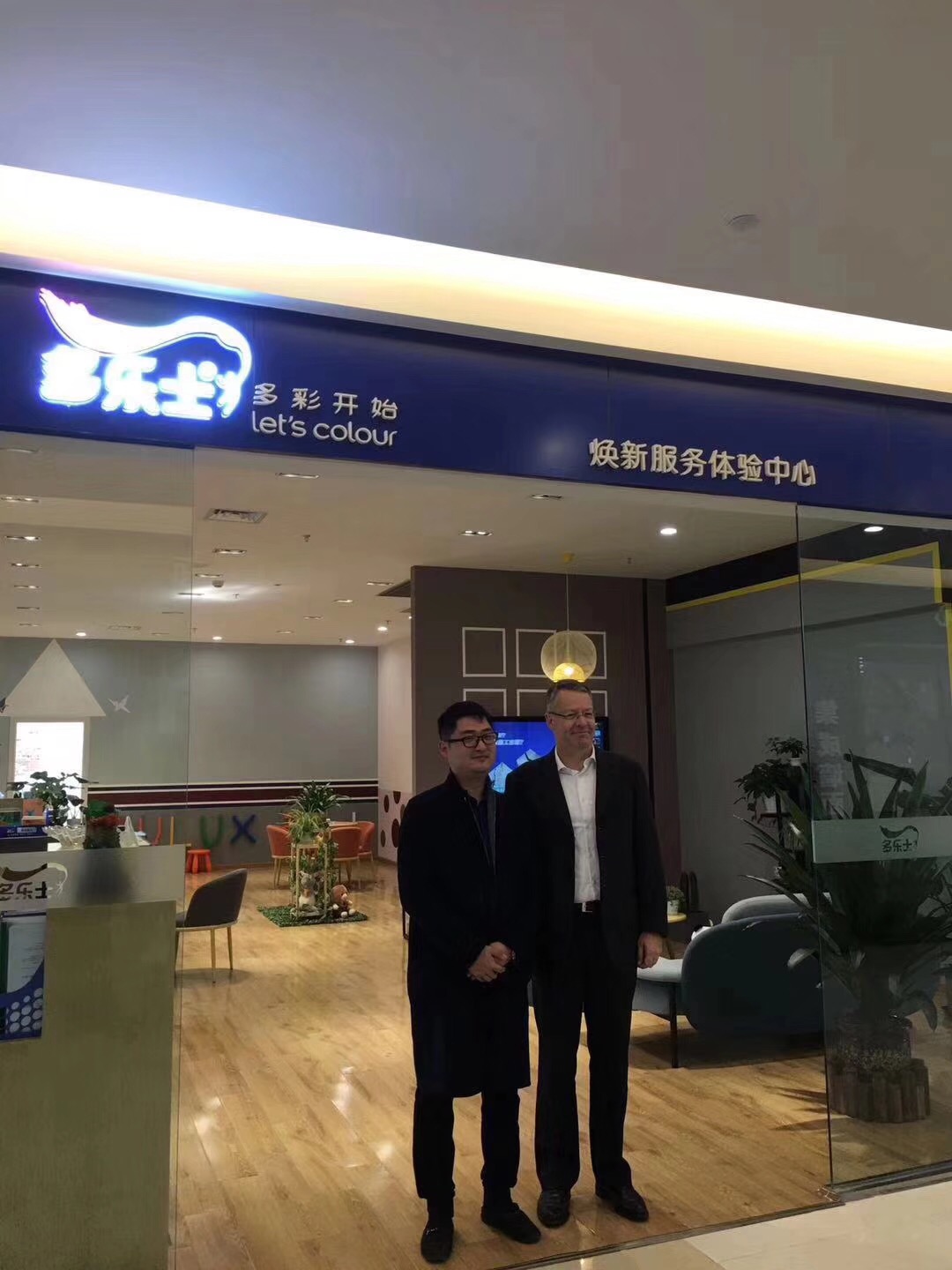 阿克蘇諾貝爾全球董事會主席首席執(zhí)行官(Thierry Vanlancker)一行蒞臨多樂士西區(qū)第一家煥新服務體驗中心